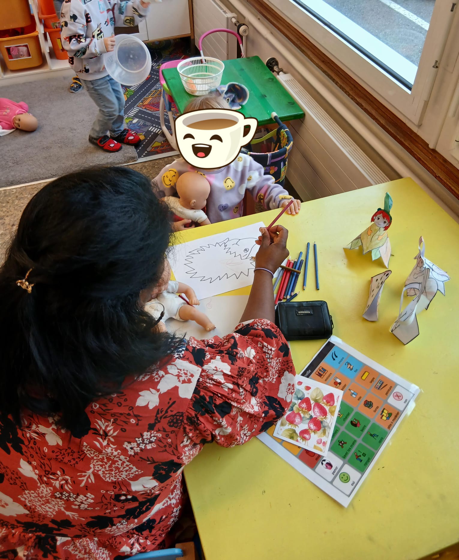 Assistante d’éducation pour la petite enfance, j’assiste la maîtresse auprès des enfants de l’école maternelle. Je travaille depuis 25 ans au sein de l’école Catimini et parallèlement, je suis accueillante à la Maison de la Petite Enfance à Fribourg et à l’Accueil extrascolaire de Cottens.